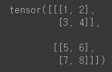 tensor1 = torch.tensor ([[[ 1 , 2 ],[ 3 , 4 ]],[[ 5 , 6 ],[ 7 , 8 ]]])